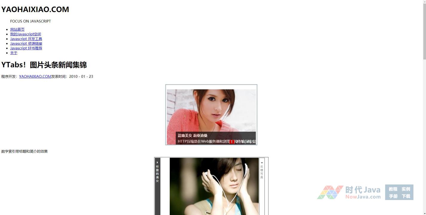 YTabs!图片头条新闻集锦,我整理的一组很经典的图片头条新闻效果。图片过度时,可以选择滚动切换,也可以选择透明的渐显过度。这一组效果都很实用,兼容性好,调用超方便。