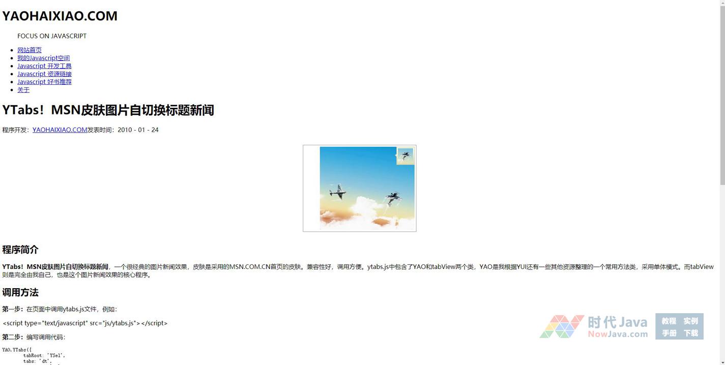 YTabs!MSN皮肤图片自切换标题新闻,一个很经典的图片新闻效果,皮肤是采用的是MSN的,兼容性好,调用方便。ytabs.js中包含了YAO和tabView两个类,YAO是我根据YUI还有一些其他资源整理的一个常用方法类,采用单体模式。而tabView则是完全由我自己,也是这个图片新闻效果的核心程序。