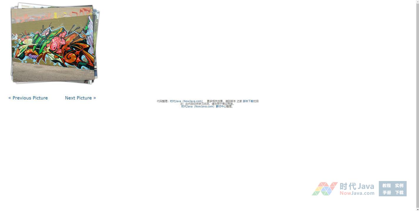 jquery实现的图片展示效果,图片通过z-index层叠在一起,点击向前向后按钮翻看图片,效果非常不错
