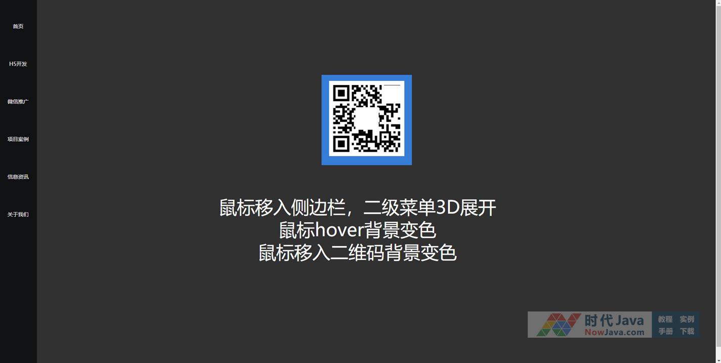 jQuery鼠标悬停3d菜单展开特效是一款基于jQuery+CSS3实现的浮动导航栏代码。竖直的主菜单贴着页面左侧,当光标移入菜单项时,以3D动画的方式弹出对应的二级菜单。