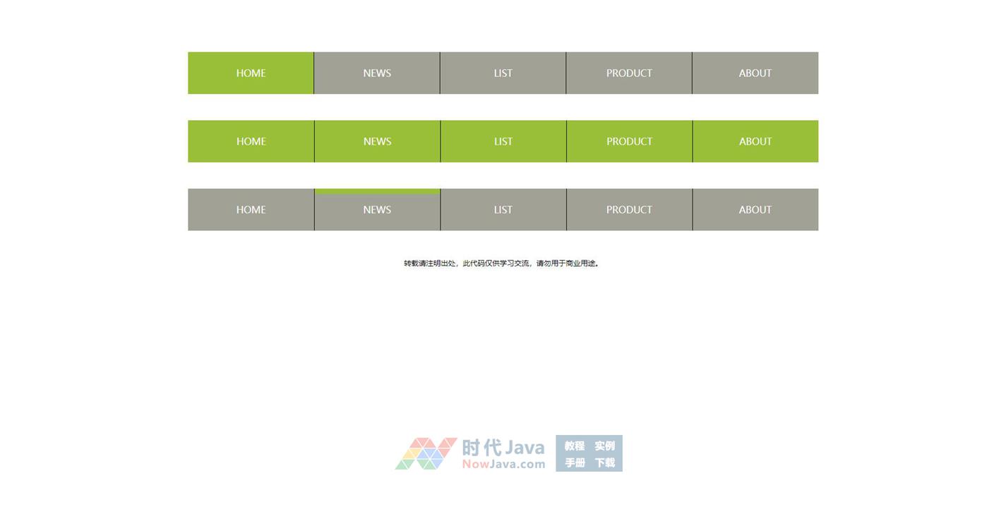 jquery跟css3鼠标悬停导航条动画特效,3款不同效果的鼠标悬停动画特效下载。