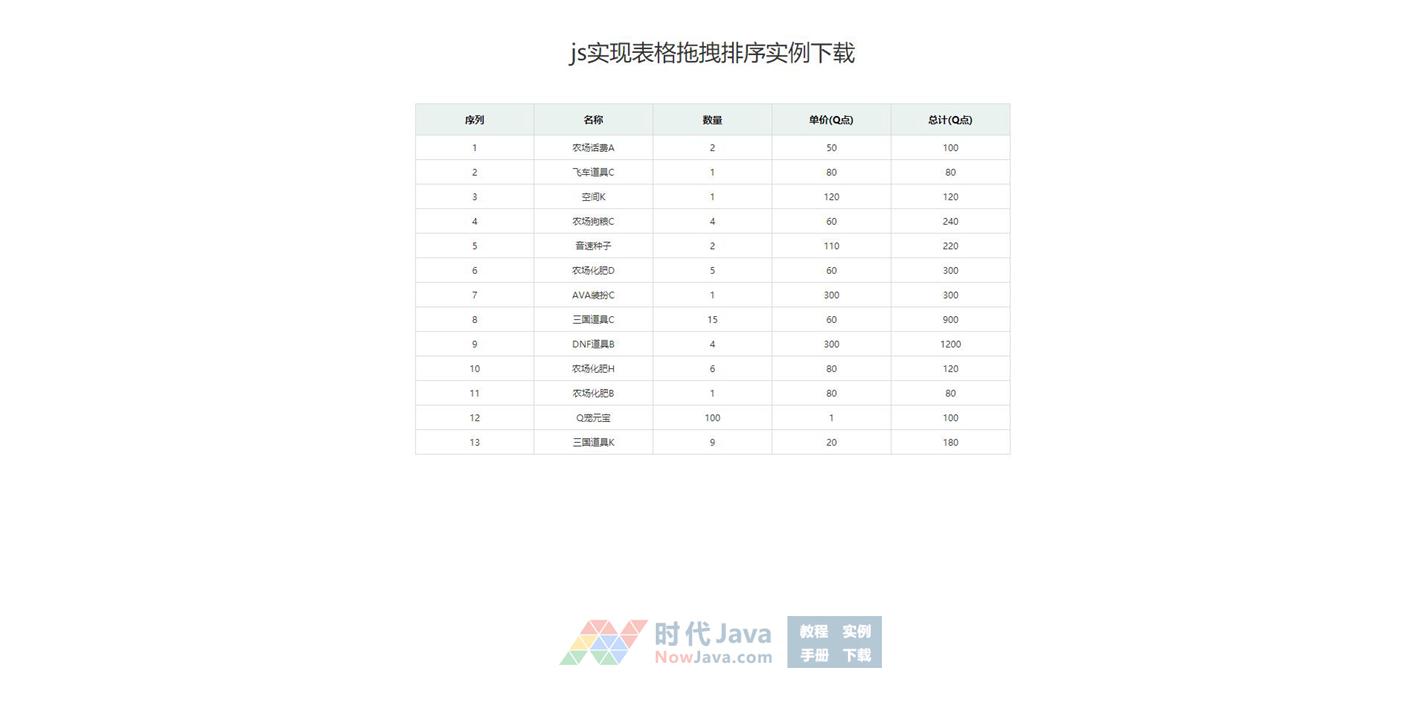 js实现表格拖拽排序实例下载,鼠标单击表格列自由拖动,点击表格头部支持升降大小排序。