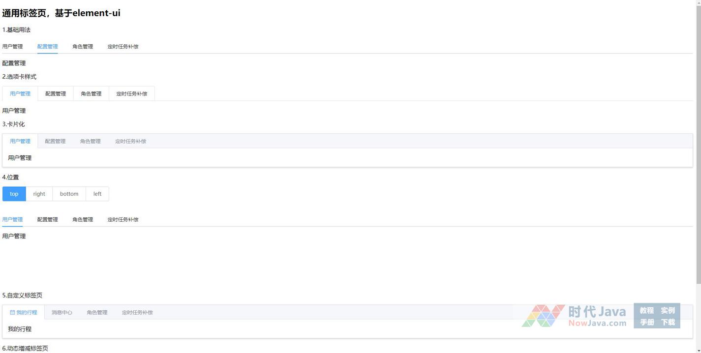 基于element-ui通用标签页代码,vue选项卡插件制作多种标签选项卡,水平垂直选项卡切换代码。