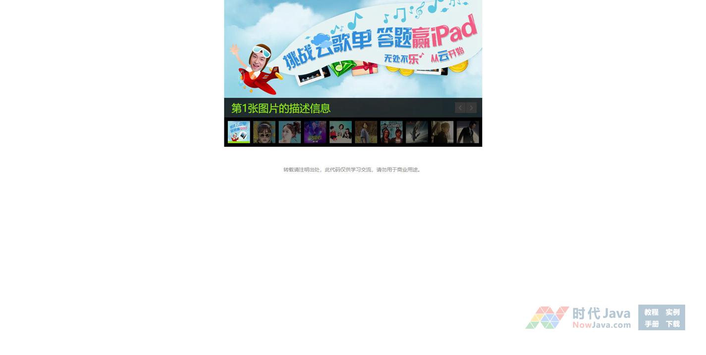 QQ音乐js焦点图是一款QQ音乐网站的js焦点图,鼠标滑过缩略图可进行切换,带左右箭头,自动切换,兼容主流浏览器。