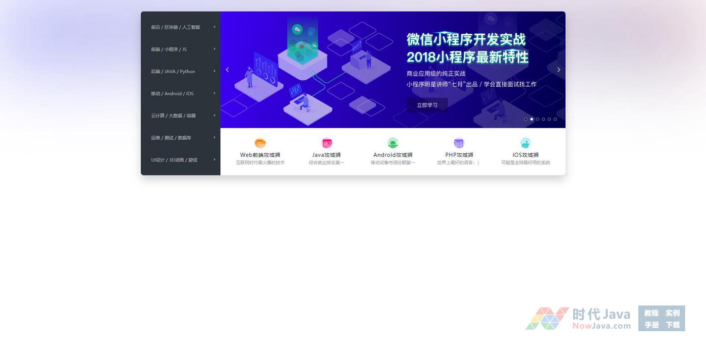 jquery分类导航加焦点图布局代码,左侧布局分类菜单,右侧布局带左右箭头跟索引按钮的焦点图,支持图片自动轮播切换。