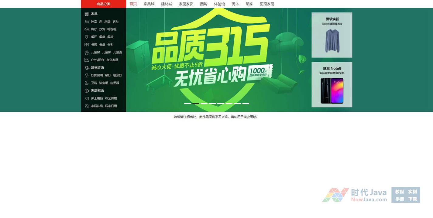 jquery家具商城商品分类导航菜单代码,带焦点图自动轮播切换,左侧为家具商城分类导航。