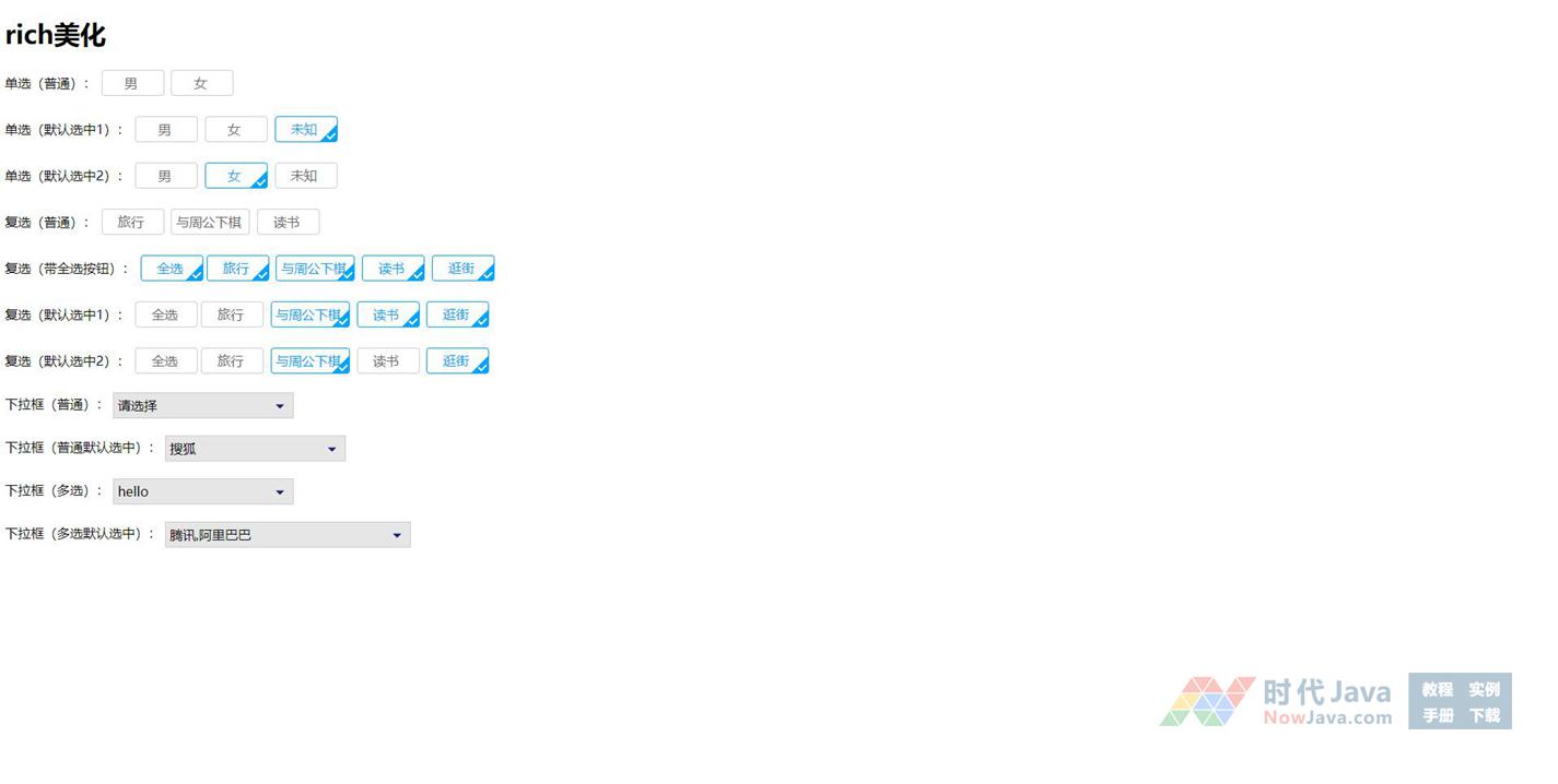 jquery单选复选下拉框表单美化代码,支持input单选或者复选框以及select下拉框等各种表单美化特效。