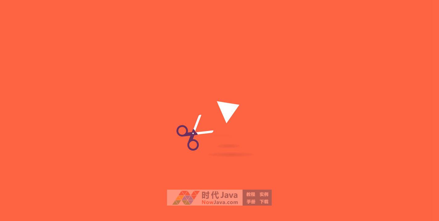 纯css3剪刀剪断纸张动画特效,剪刀飞快的穿过剪断纸片,效果为循环不断的展示。