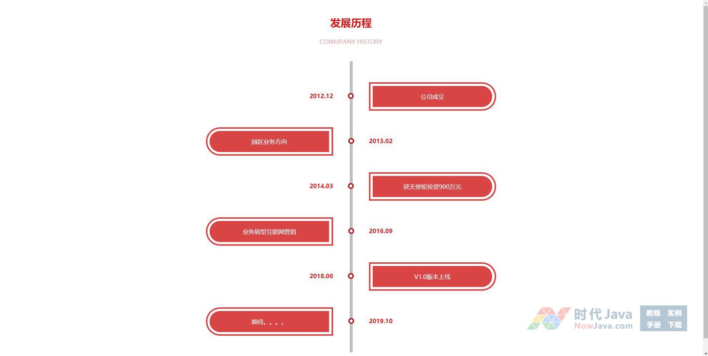div css3红色发展历程历史事件特效,基于jquery跟css3制作的公司成长时间轴代码下载。