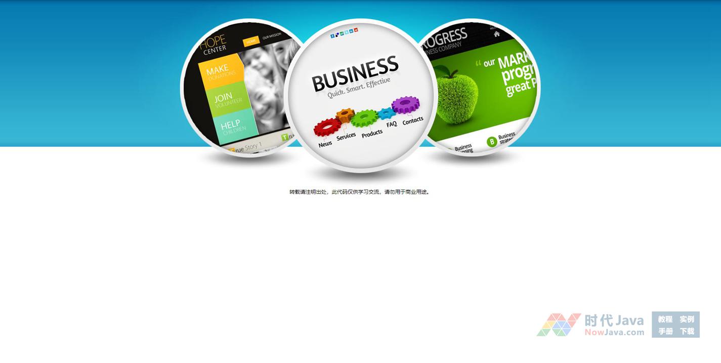 一款3D图片旋转木马,鼠标点击任何一个圆可进行滑动切换,支持自动轮播切换,效果非常棒。