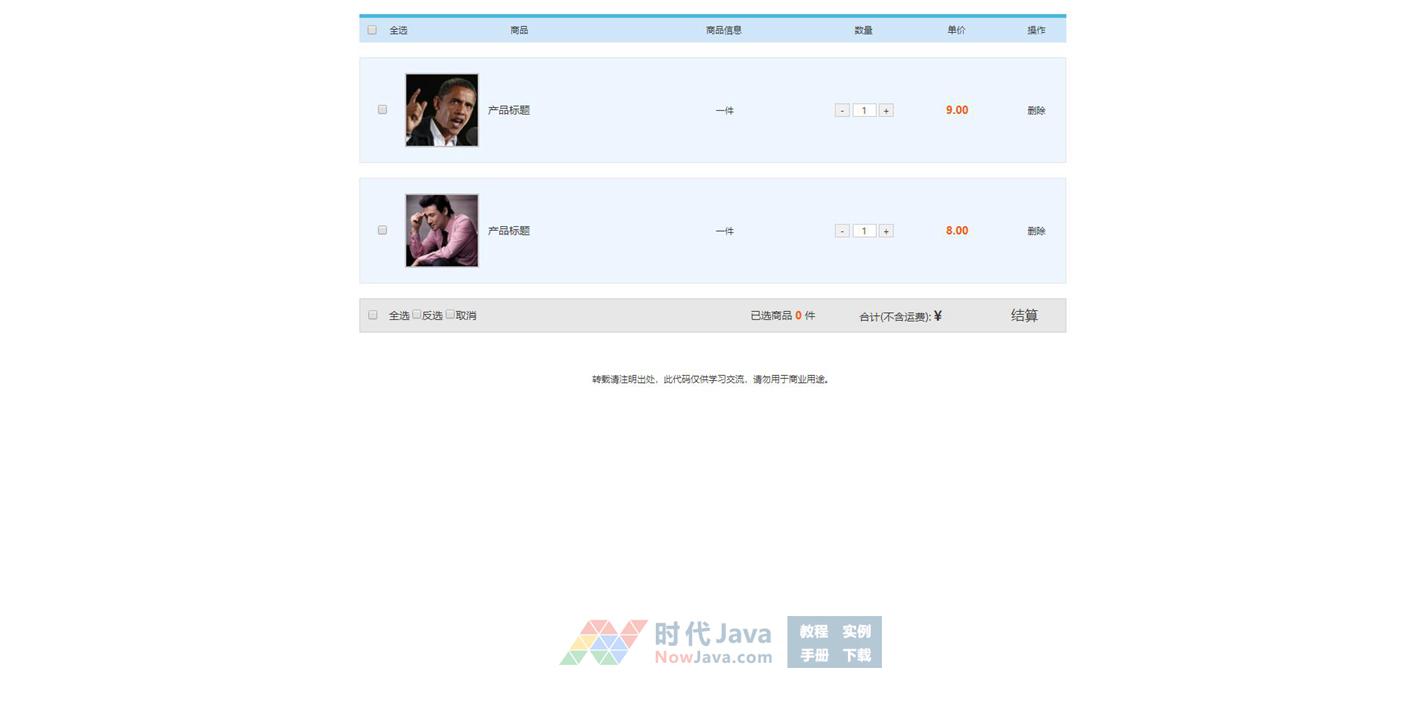 一款基于jQuery制作的类似淘宝的购物车,带有复选框、全选、反选、取消,购物车,统计价格,非常不错的。