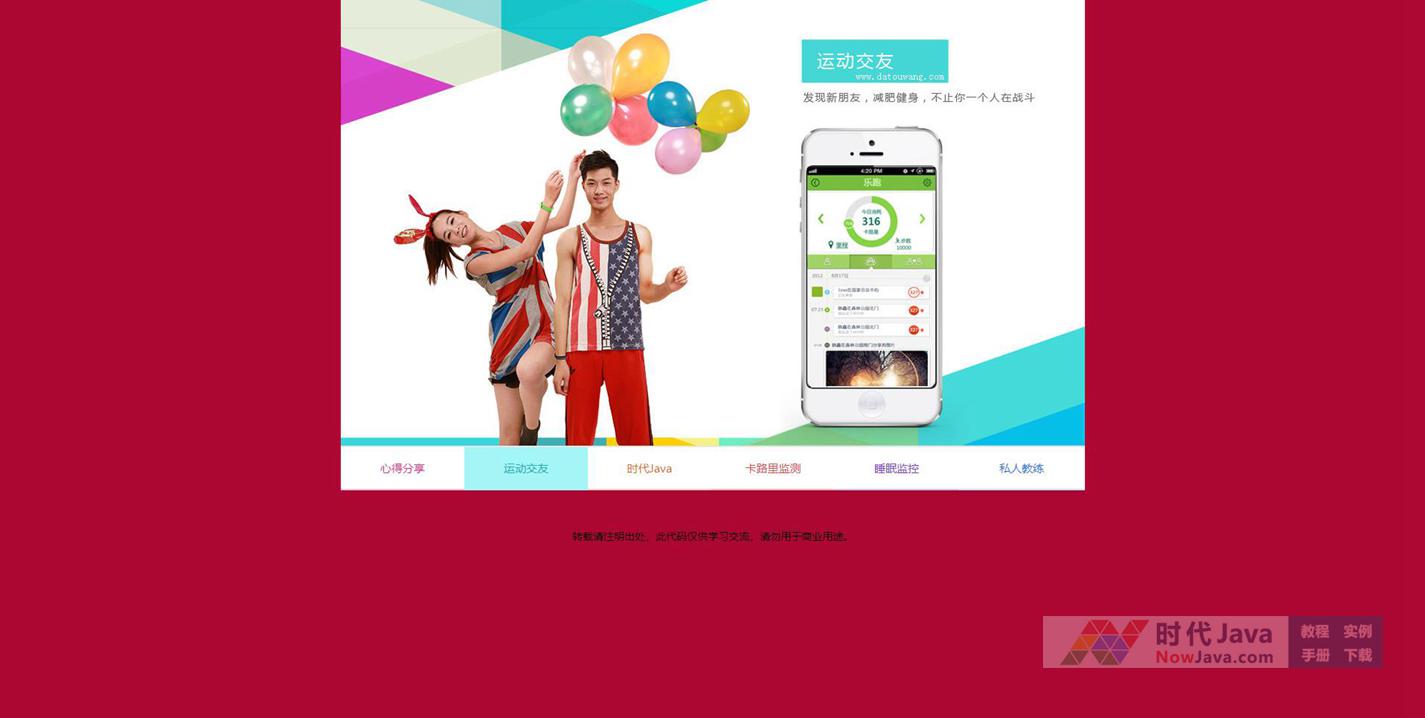 一款来自QQ空间乐跑手环专题页面的jQuery焦点图,带标签选项卡,圆形左右箭头,鼠标滑过选项卡自动进行图片切换。