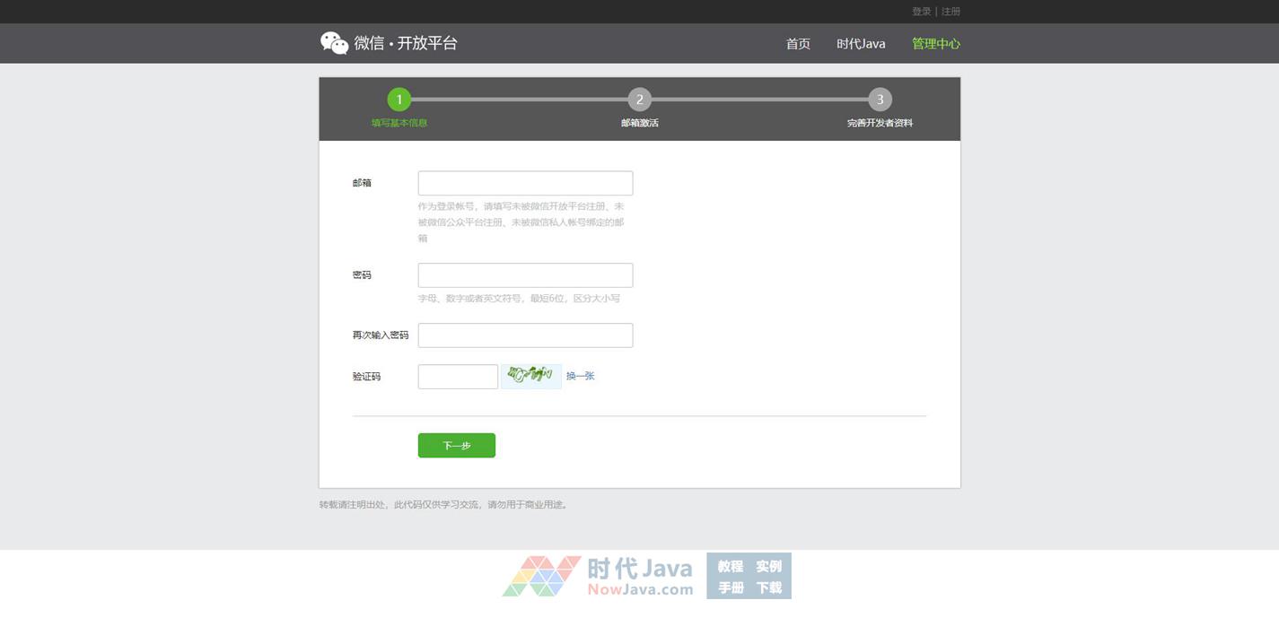 一款基于jQuery实现的仿微信开放平台选项卡带步骤的注册表单验证代码下载。