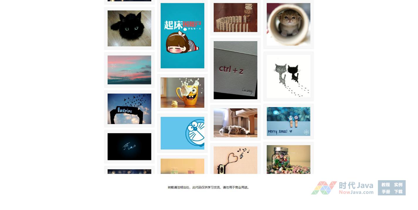 一款仿堆糖网瀑布流图片布局,设置单排图片上下对齐图片自动上下交替滚动效果,单排图片按左右顺序上下图片自动滚动。
