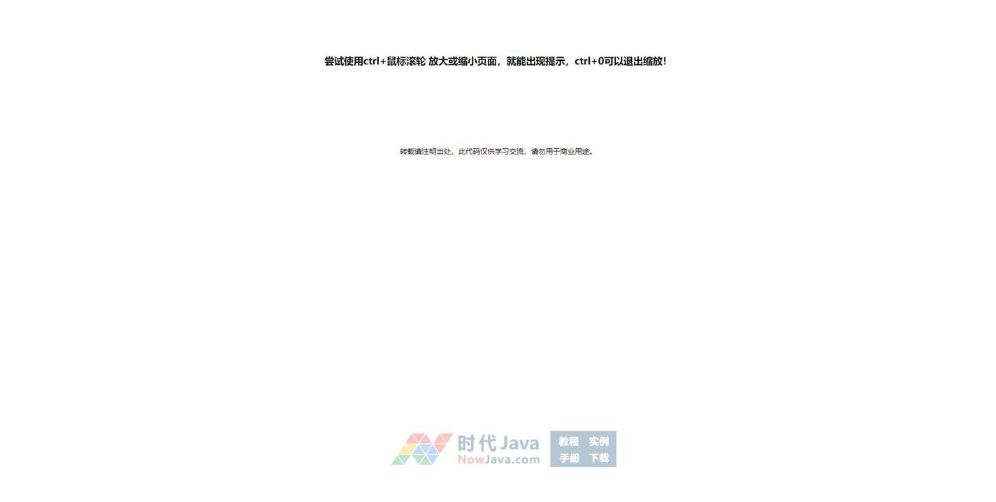 jquery网页缩放检测提示插件zoomDetect,进入demo页面后,尝试放大或缩小页面,就能出现提示,ctrl+0可以退出缩放。