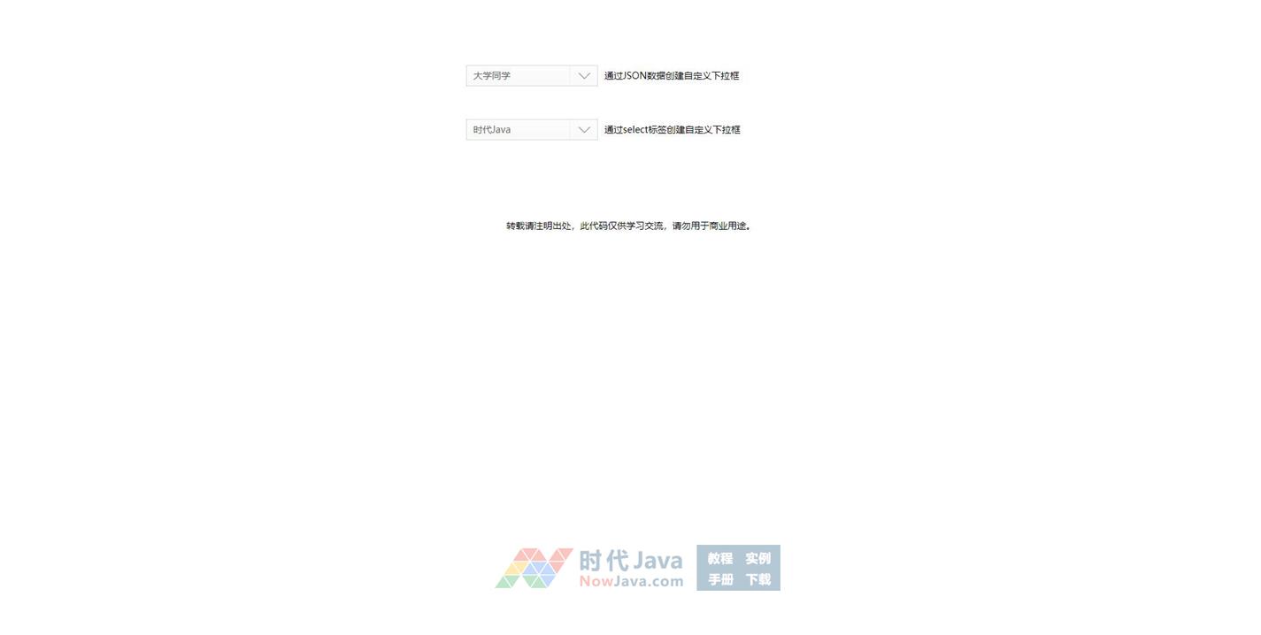 jquery实现json数据跟select标签下拉框是一款DropDownList.js插件,提供两种方式创建自定义下拉框,可以从原生的select控件克隆一个新的自定义下拉框,也可以用JSON格式的数据,新创建一个,并且可以从原生控件中获取值。