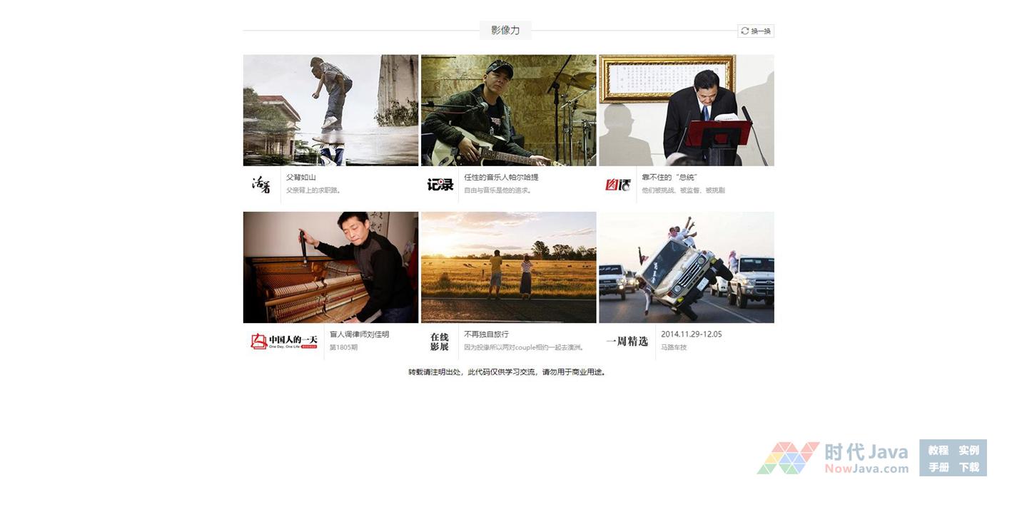 jquery鼠标点击按钮新闻图片换一换代码是一款来自新闻网站的鼠标点击换一换按钮,六张图片同时切换特效代码。