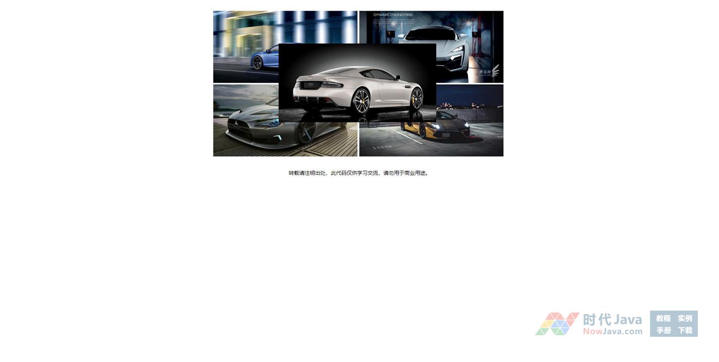 jquery实现5张图片重叠切换代码,图片四张平铺,一张突出显示;鼠标滑过平铺图片滑动切换突出显示的图片。