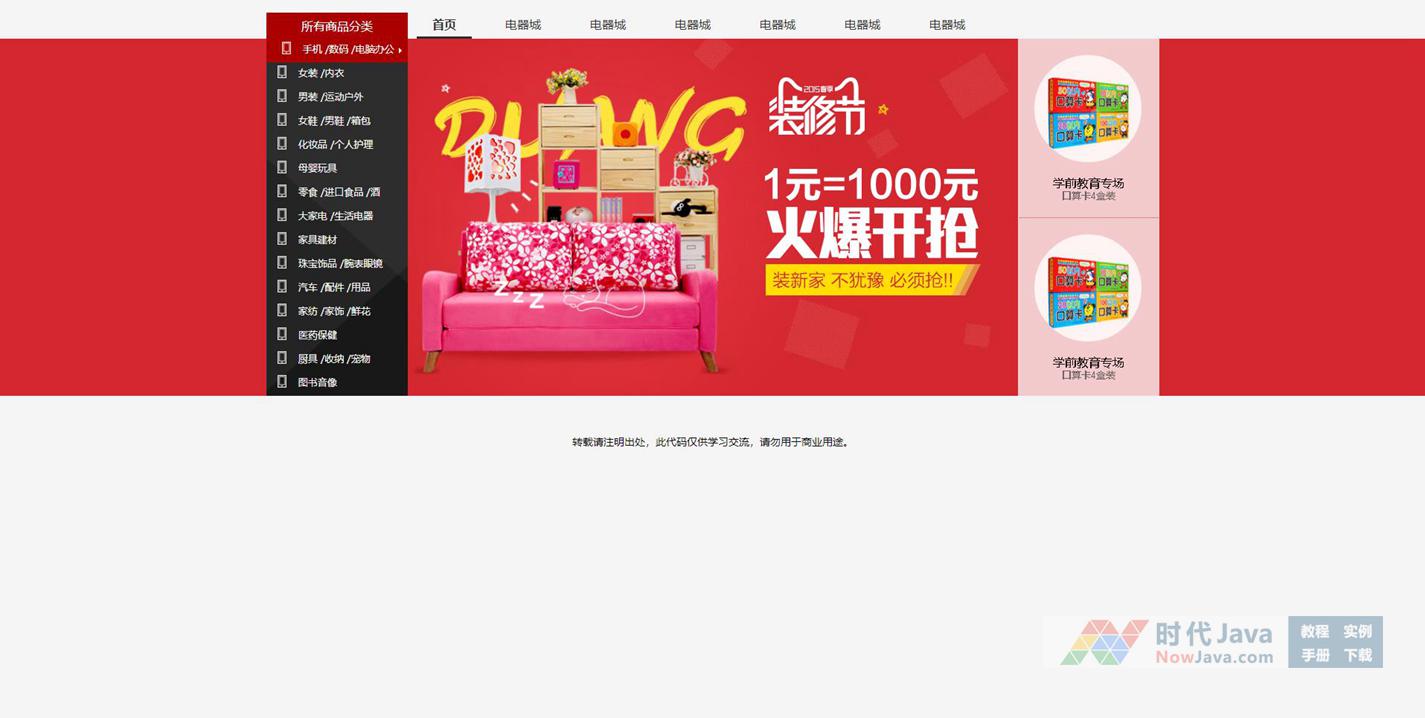 2015天猫jquery分类导航代码是一款基于jquery制作的仿天猫商品分类导航控制banner图片切换代码。