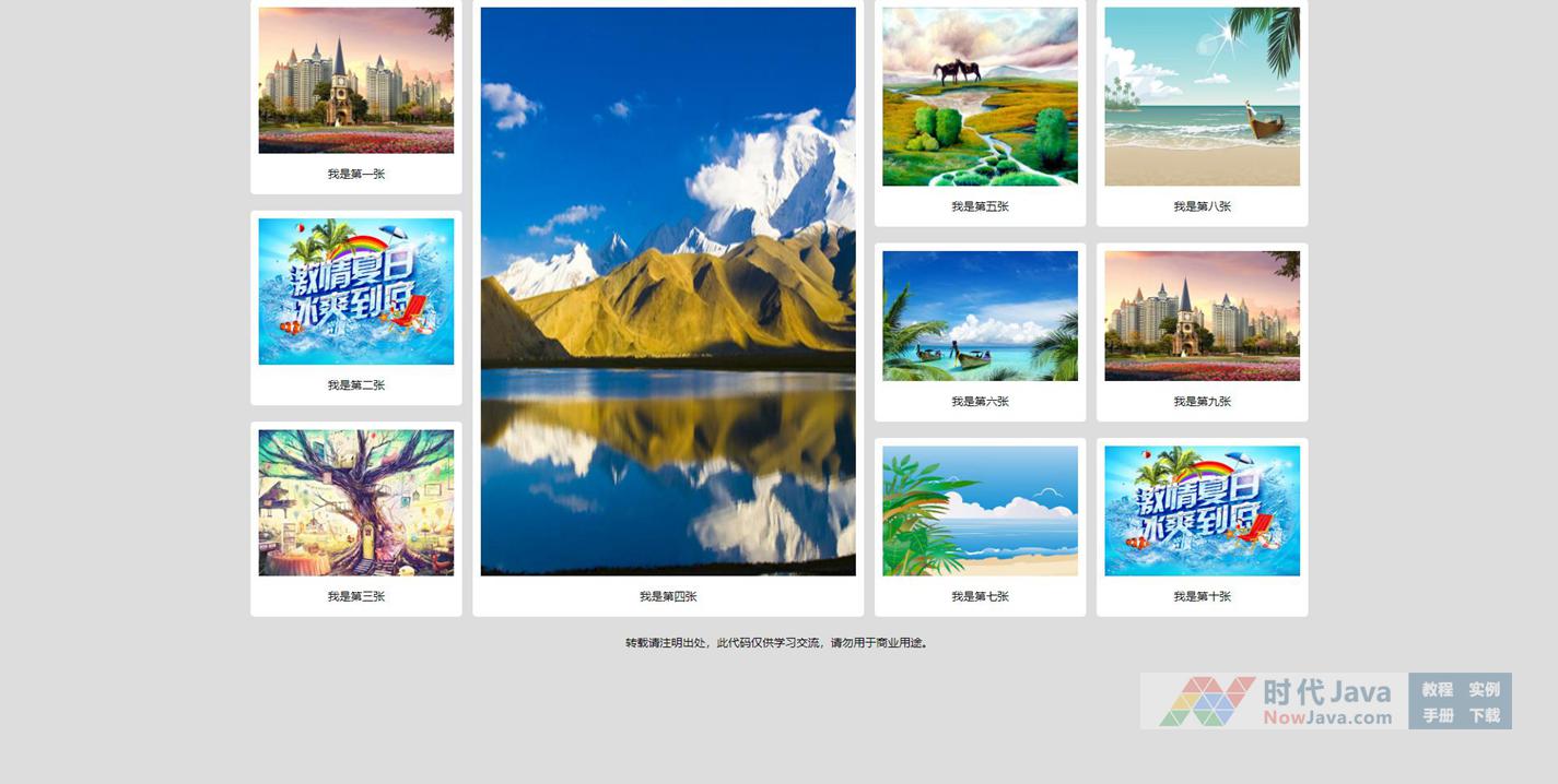 js瀑布流效果支持鼠标拖拽布局,采用网格瀑布流布局样式,支持鼠标左击拖动突破切换位置代码。