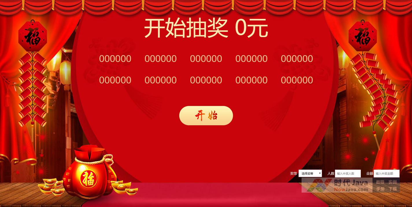 jquery喜庆年会数字滚动抽奖代码,带有随机性,不重复性,可以自己设置奖等,中奖人数,中奖金额等。