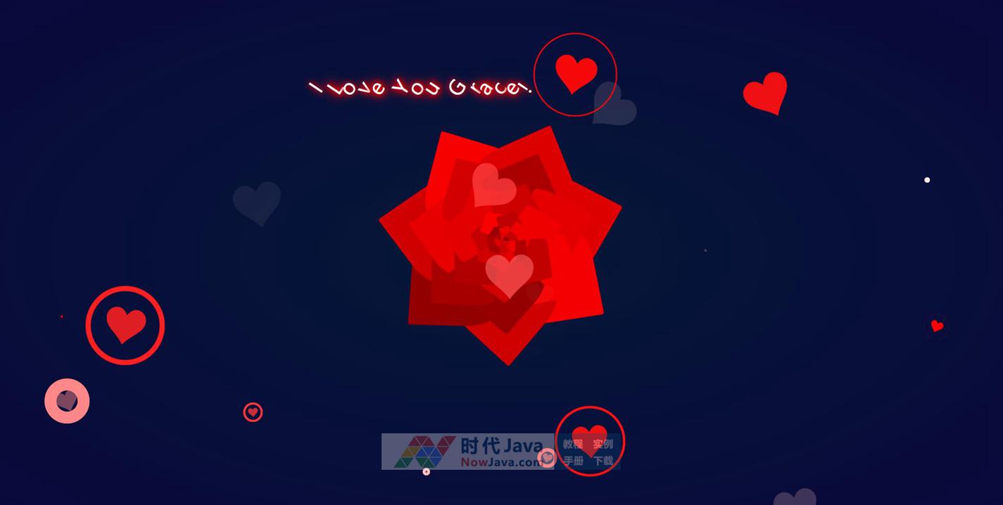 css3 svg情人节鲜花表白动画特效,情人节红色玫瑰花,带有红心闪烁漂浮显示特效。
