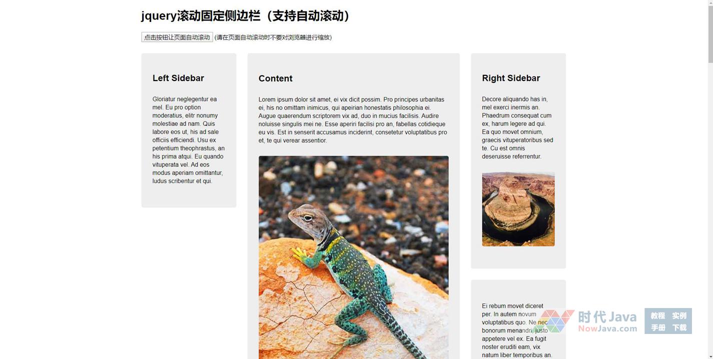 jquery滚动固定侧边栏(支持自动滚动)