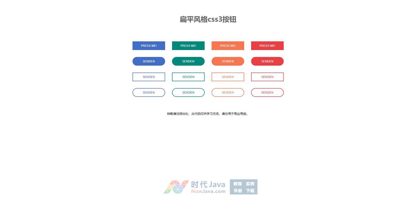 css3点击水波纹扩散动画按钮特效,扁平化风格的css3按钮样式代码。