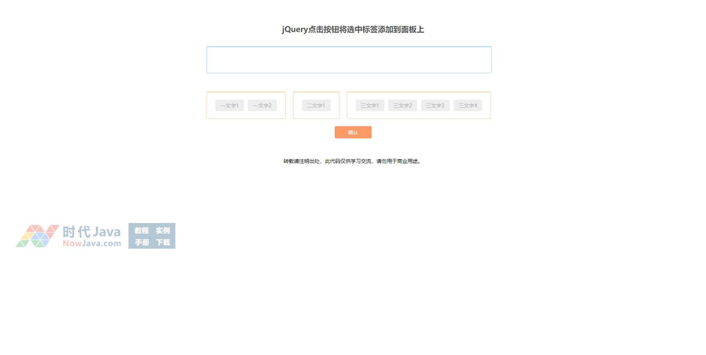 jquery鼠标点击添加标签到面板代码,点击按钮将选中标签添加到面板上;再次选中标签,点击按钮可删除面板中的标签。
