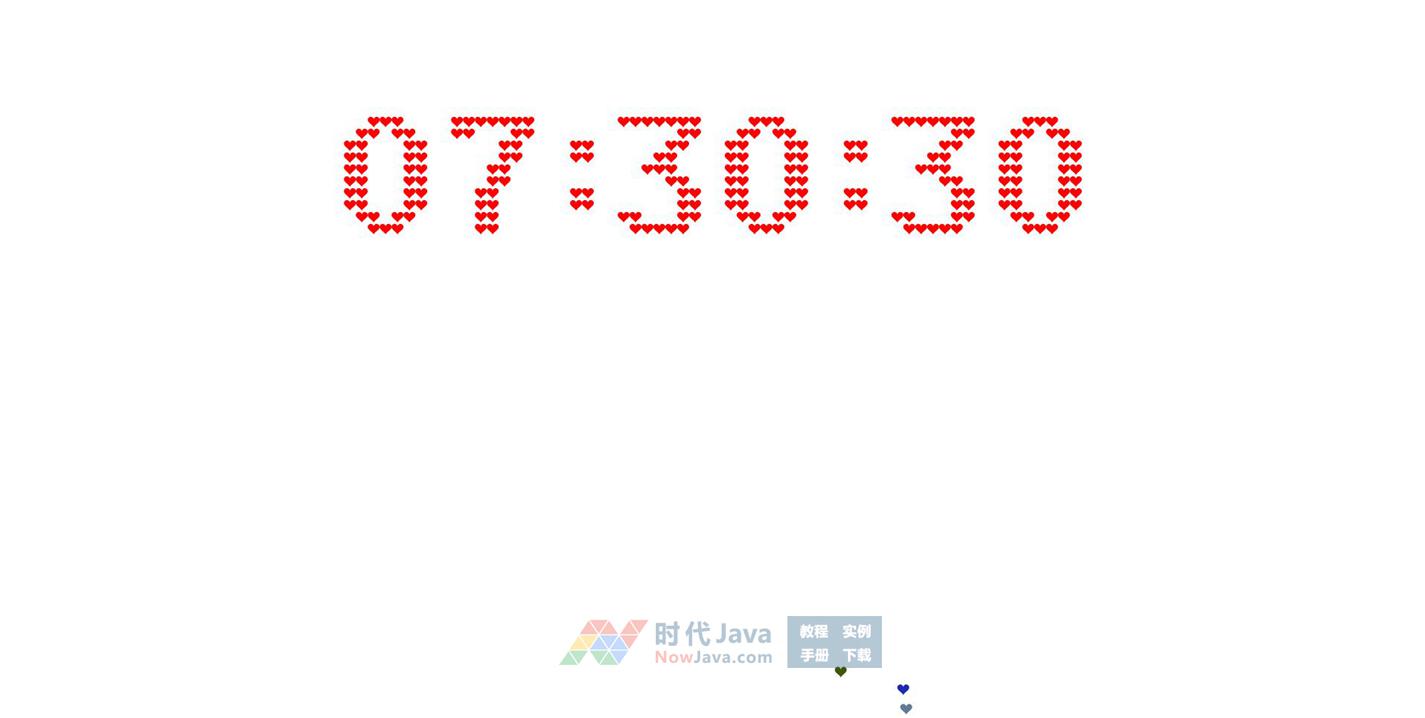 html5 canvas爱心组成数字时钟代码,自动获取本地时间,数字跳动切换的时候会显示很多五颜六色的爱心,效果非常不错。