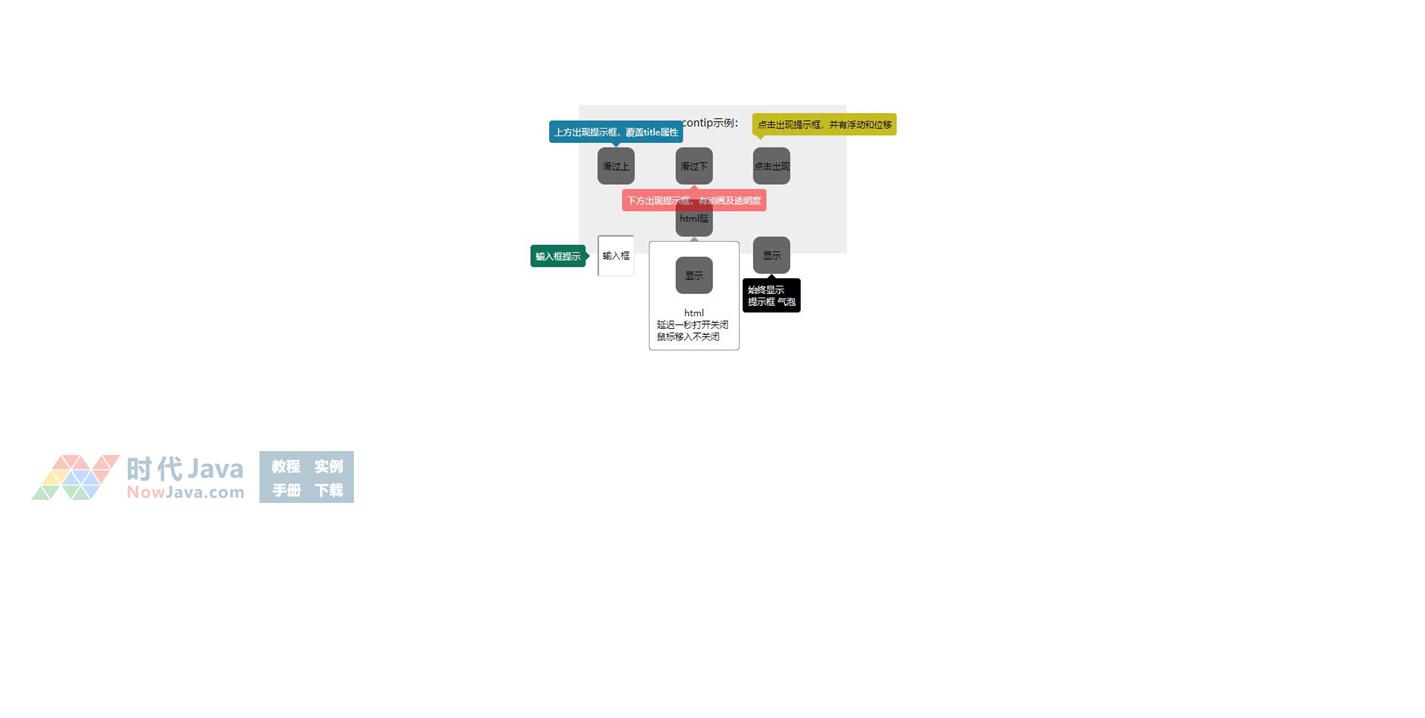 气泡提示框插件jquery.contip.js,基于jquery的气泡提示框tip插件。轻量级,扁平化,不用加载css文件,自定义风格,事件监听,代码注释清晰,可扩展性强。