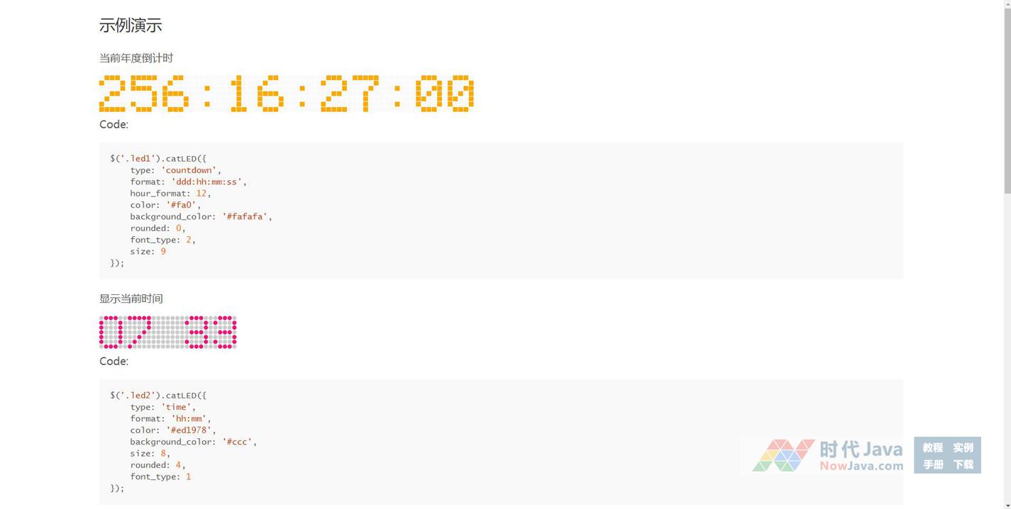 jquery时间倒计时插件led样式,可分别显示当前时间,新年倒计时,圣诞倒计时,随机数字,随机字母等的LED样式效果;颜色,字体等样式均可自由调整设置。