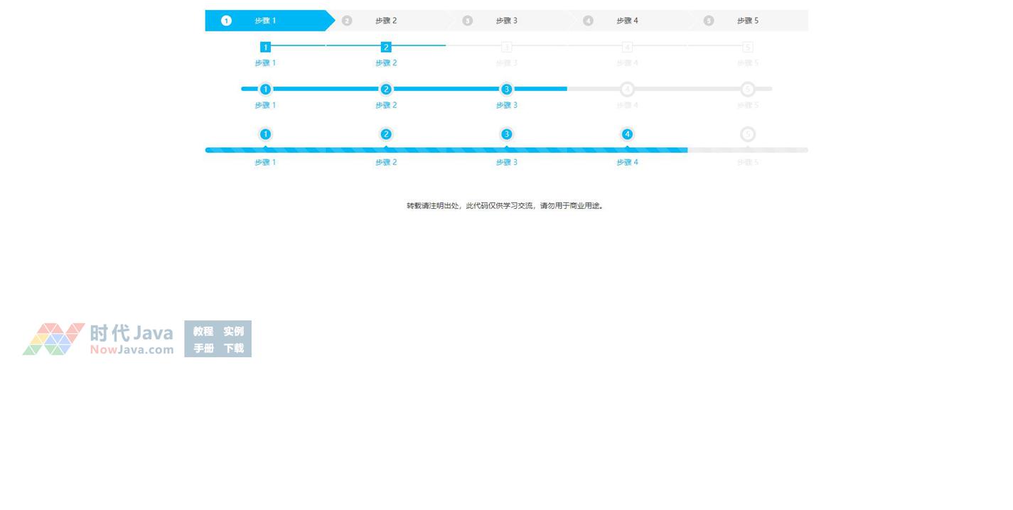 jquery蓝色分步步骤进度条代码,可以控制当前显示在哪一步,适合分步注册或操作流程的页面场景。