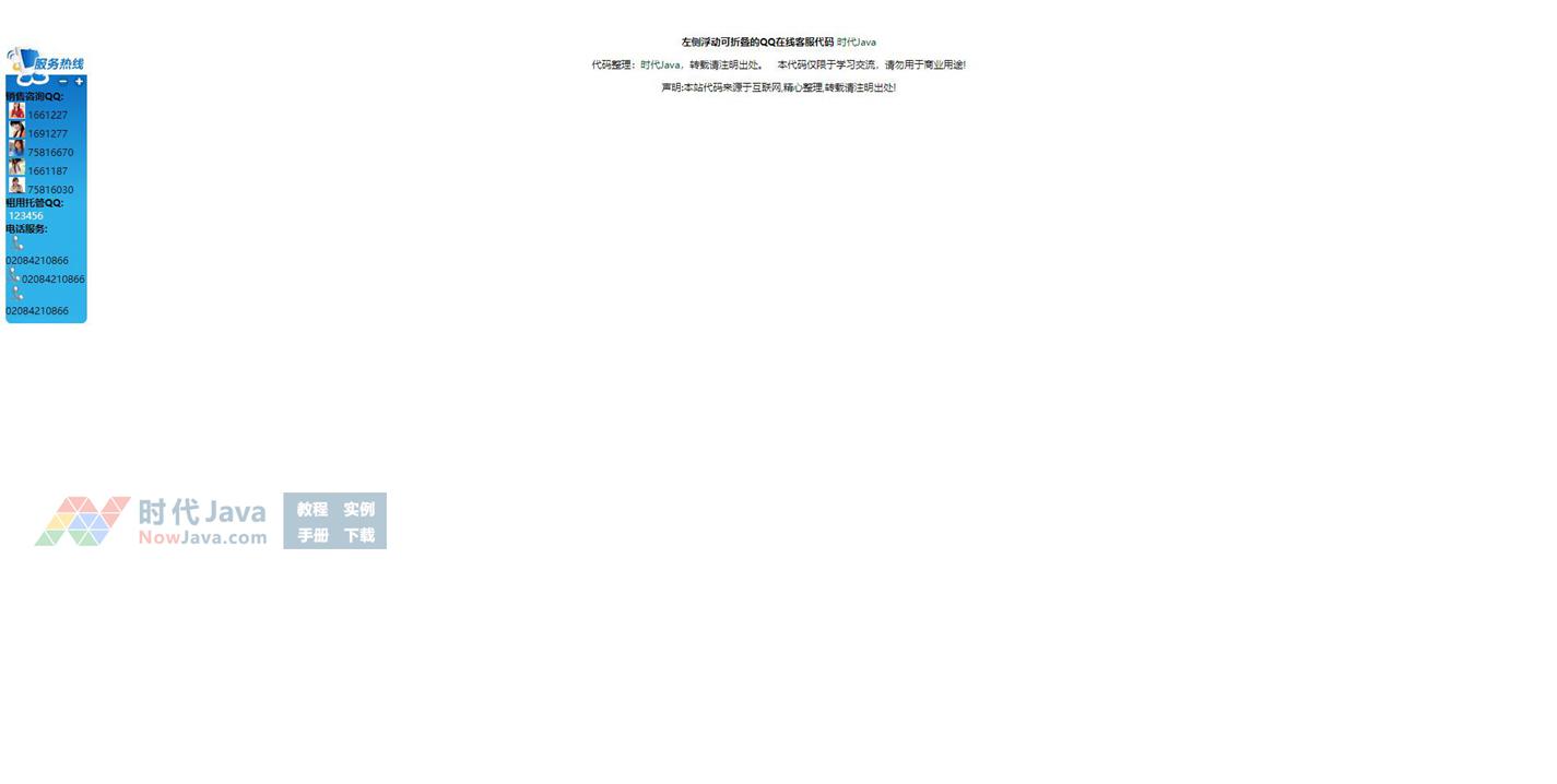 左侧浮动可折叠的QQ在线客服代码,亦可以自定义客服头像,添加客服电话,功能比较齐全。