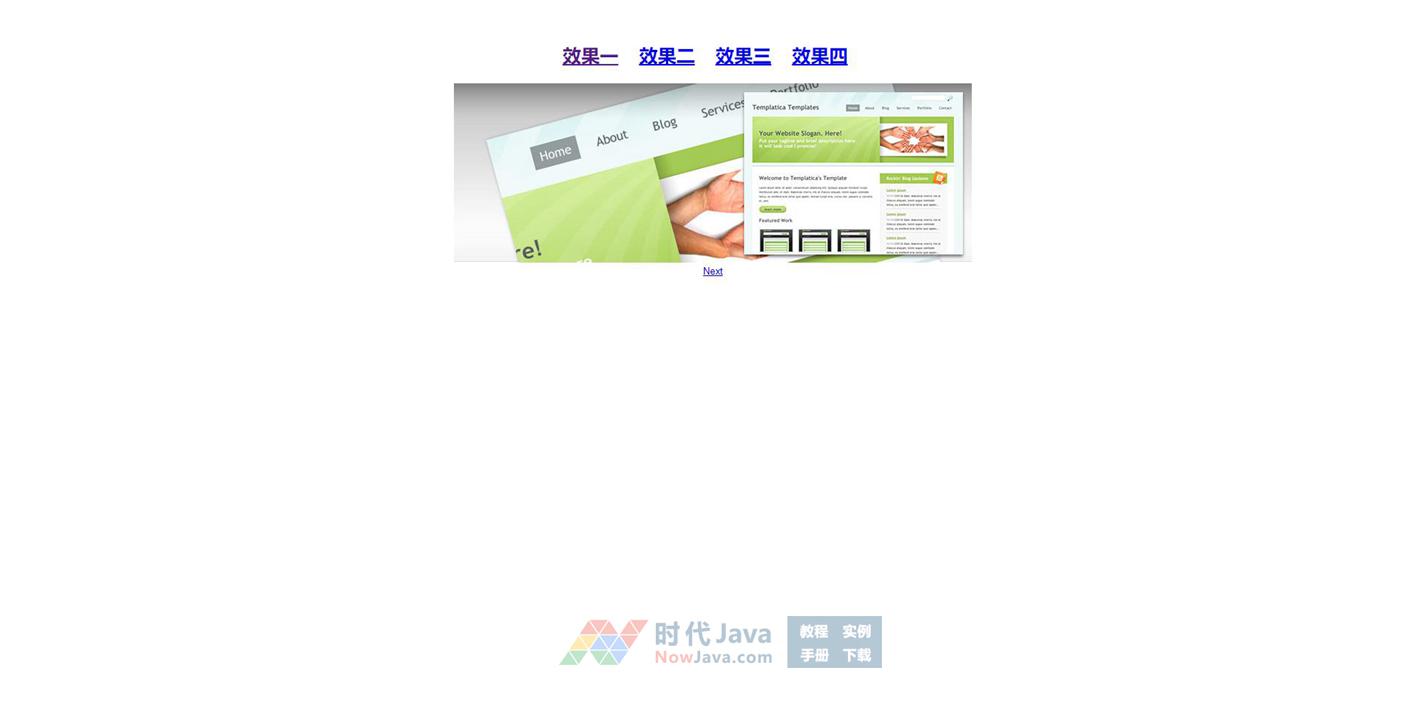 附件提供了五种不同切换方式的焦点图特效,其中一款模仿了文章上一页下一页的分页样式