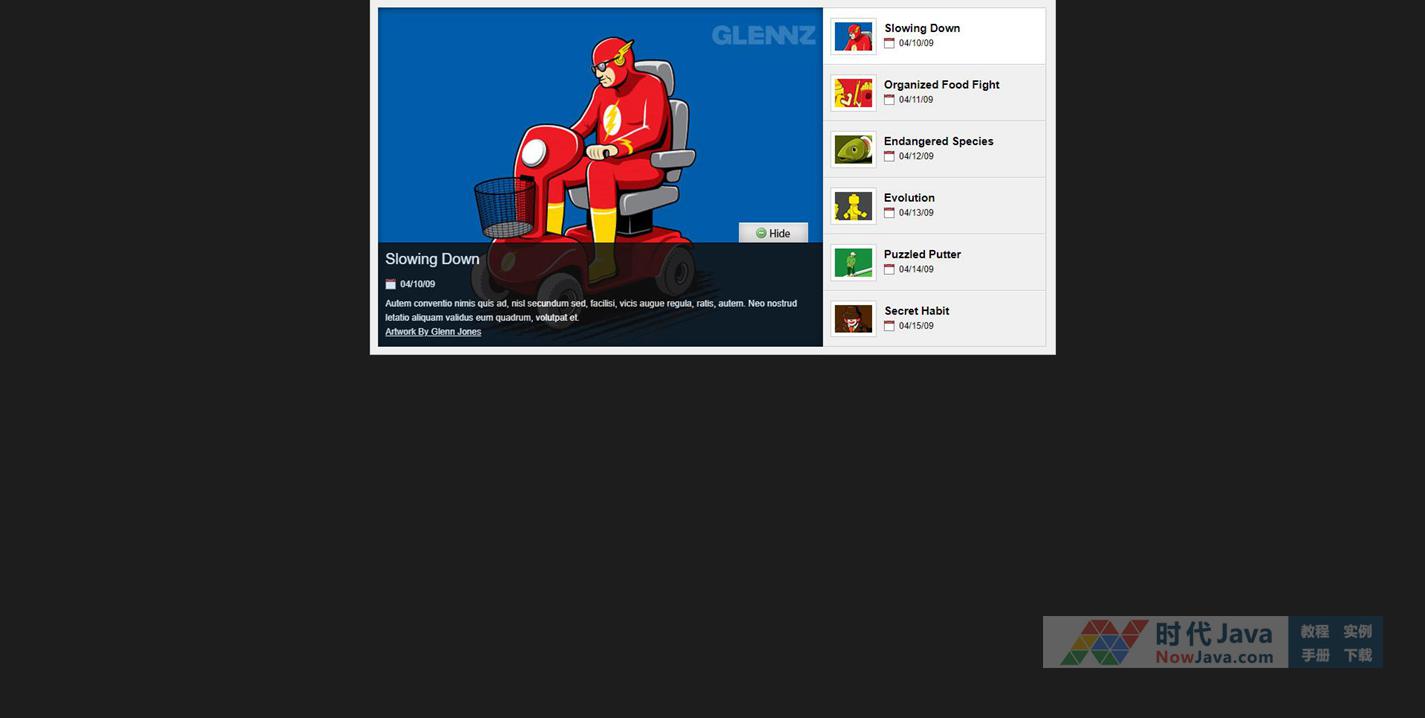 这是一款来自国外某网站的焦点图切换代码,效果简单顺畅,界面干净,代码也利于修改,晓恬雨推荐大家使用