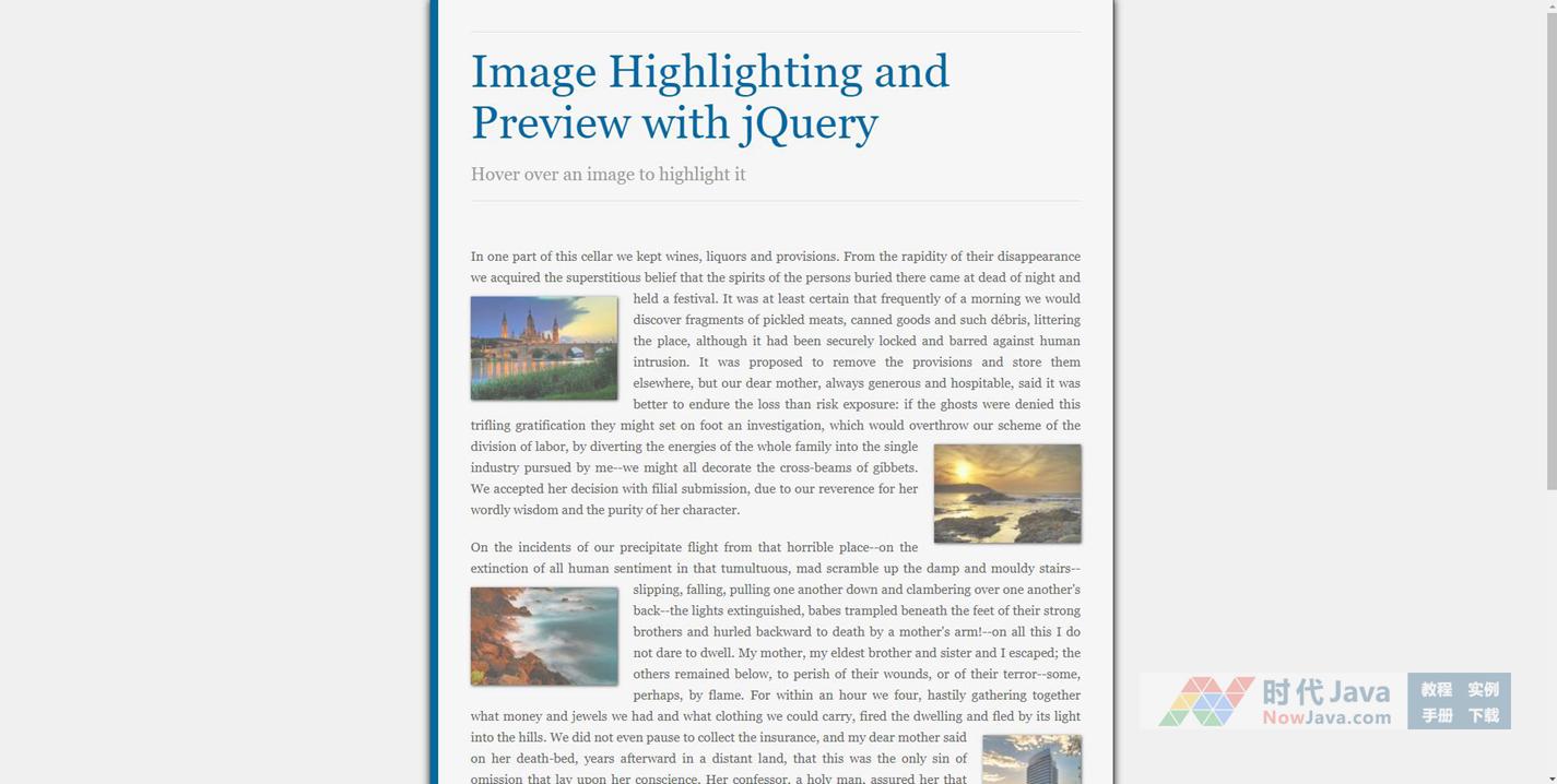 一款国外网站翻译过来的图片放大效果,国内至今还未见过此效果。双击图片,图片独立显示,其他内容变暗,点击放大镜,图片放大,效果不错