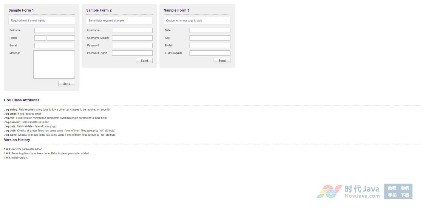 三种不同风格的表单验证表单,可以有效验证字符串,数字,日期或e-mail,例如:所需的数字输入和至少5个字符长度等。
