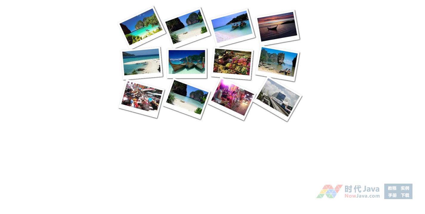 HTML5实现的图片墙效果。倾斜悬挂的图片,鼠标移动上去后还会做移动效果。很棒的相册效果