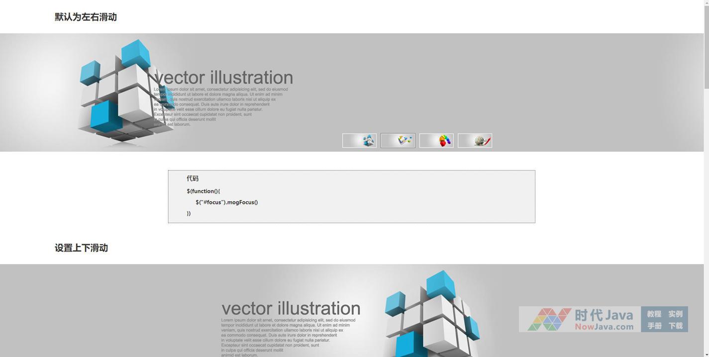 一个非常不错的焦点图切换效果,带有左右切换箭头、缩略图。默认为左右切换效果,当然,其他效果稍作修改也是可以实现的(来源:jq-school)。