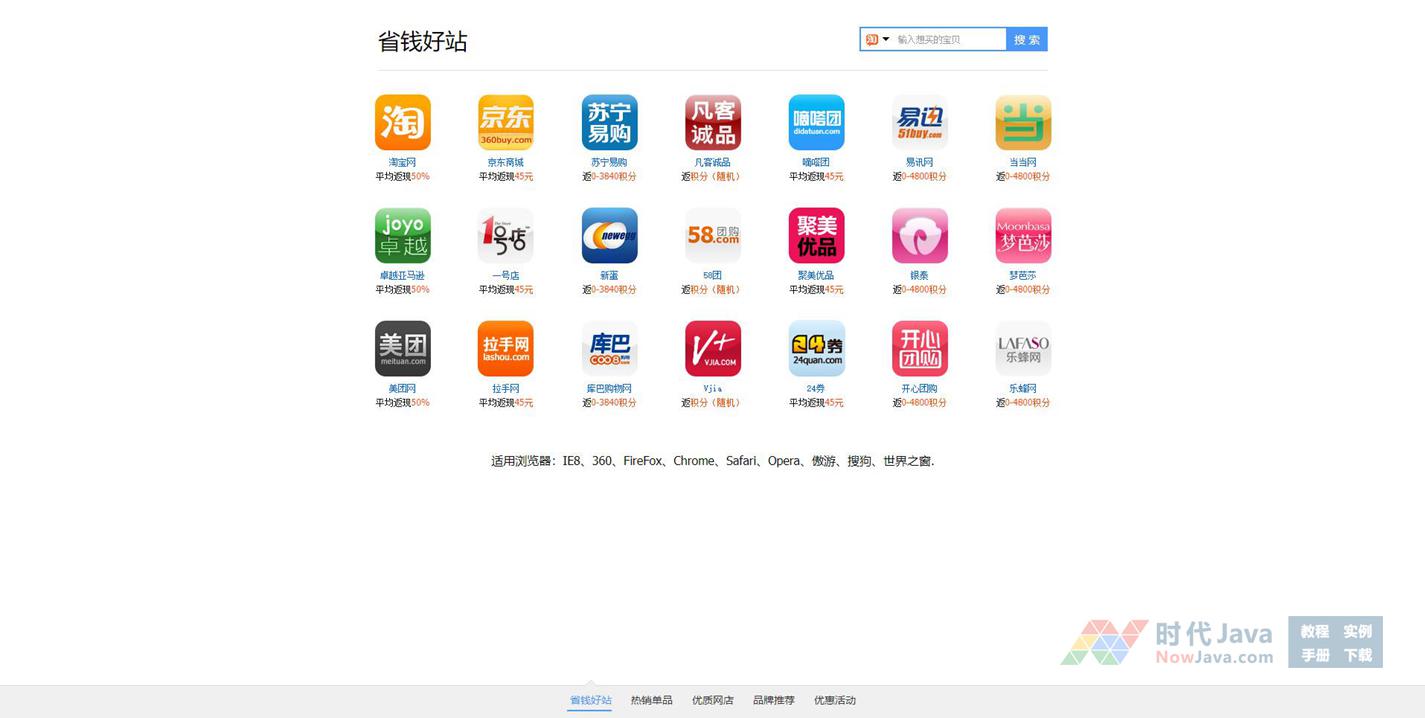 适合做购物类网站导航页面,支持底部tab标签切换。类似360浏览器的欢迎页面导航效果