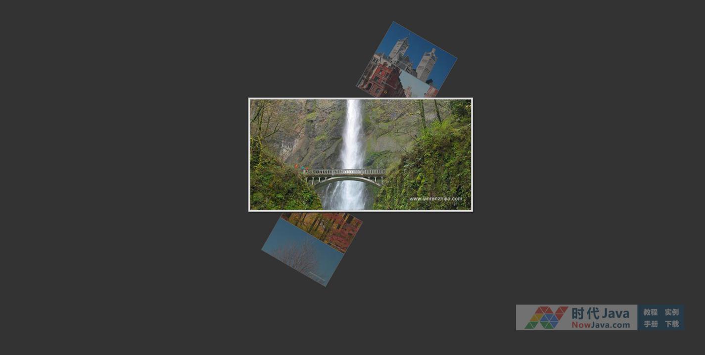 这是一款jquery+css3实现的图片查看器相册效果,默认图片并排呈现45度右倾效果,分别点击每个图片均会放大展示,效果很不错,推荐下载,转载请注明出处。