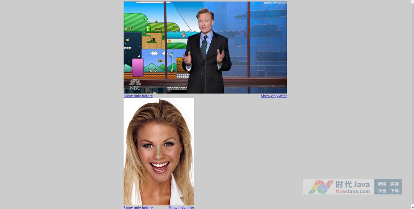 两张新旧图片叠加,以中间间隔线为间隔,左右拖动图片的时候,图片交替显示