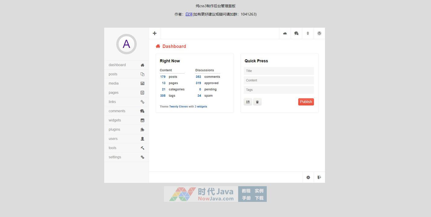 一款以css3为主的后台管理面板,几乎为纯代码实现,效果良好,推荐下载