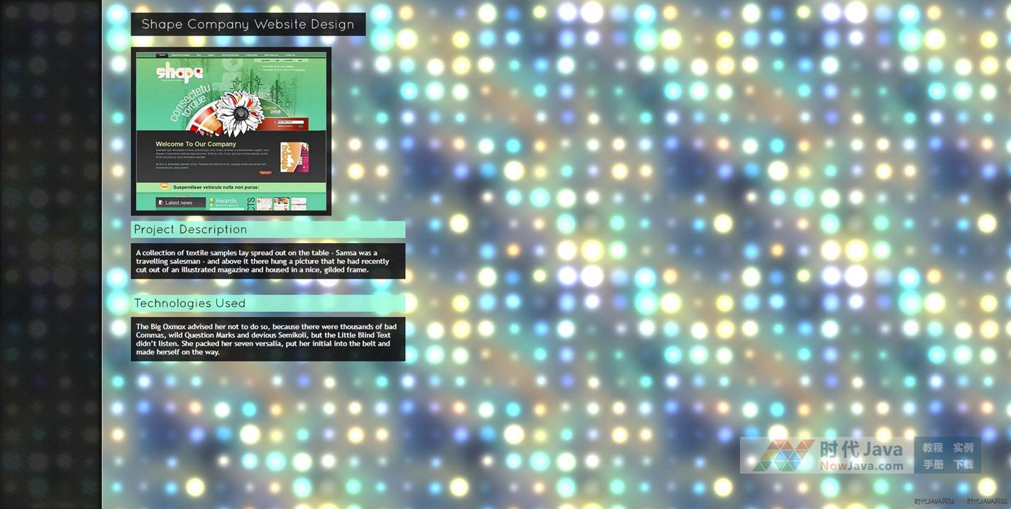 一款很不错的图片相册效果,左侧缩略图自动感应鼠标位置,上下自动滚动切换缩略图位置,右侧动态图片文字渐隐渐现,效果很不错哦