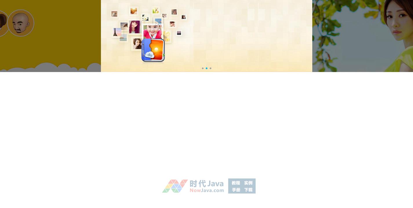 两侧图片带有透明遮罩效果,中间图片高亮显示
