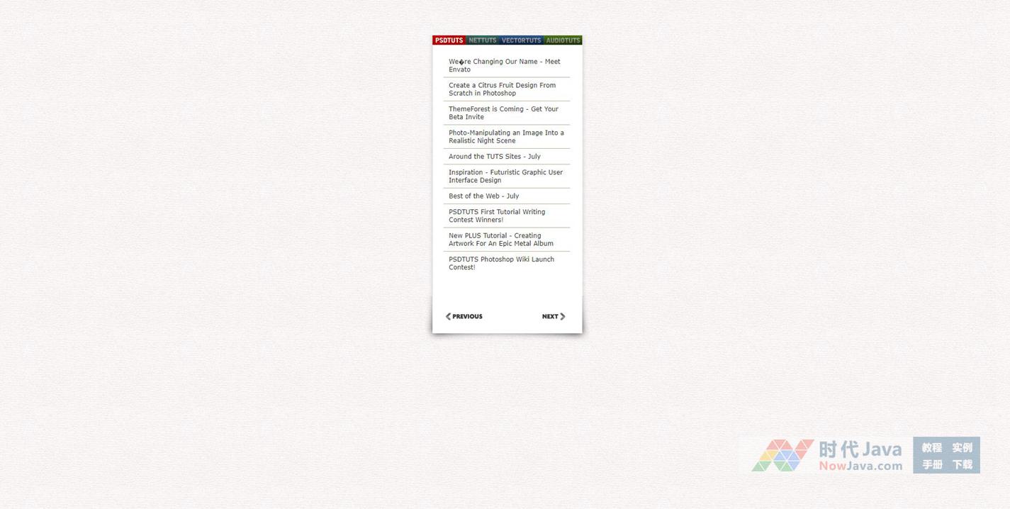 找了好久终于才找到这种用图片做tab标签切换背景的效果,其实现原理是将两种效果做到一个图片上,鼠标移动到tab标签上时背景位置做下调整,原理很简单,推荐下载