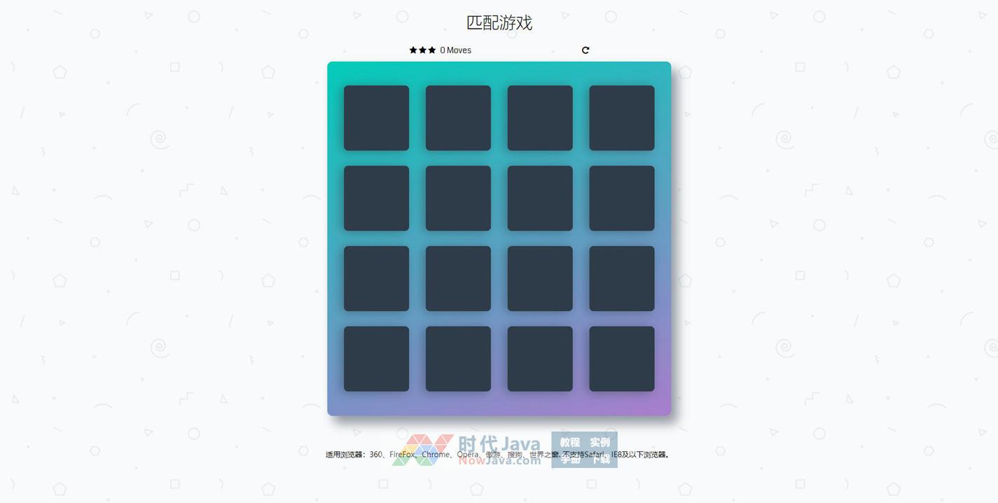 16宫格翻牌匹配HTML5小游戏代码是一款翻牌图标匹配游戏,翻开两个图标一样则匹配成功,直到16个图标全部匹配成功就胜利了。