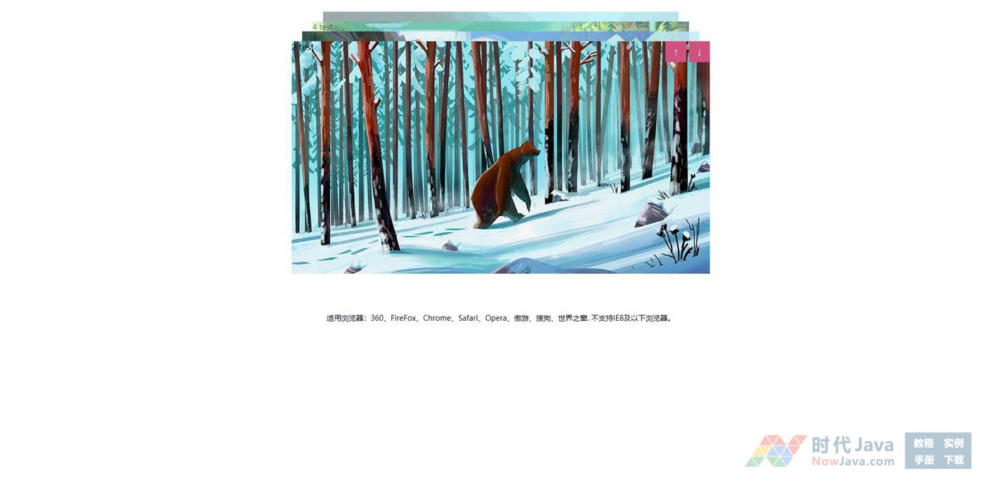 jQuery 3D堆叠式图片自动切换代码是一款将各个slide堆叠在一起,有上下箭头按钮控制,利用jquery跟CSS3 transforms和transitions来制作上下切换的堆叠幻灯片效果。