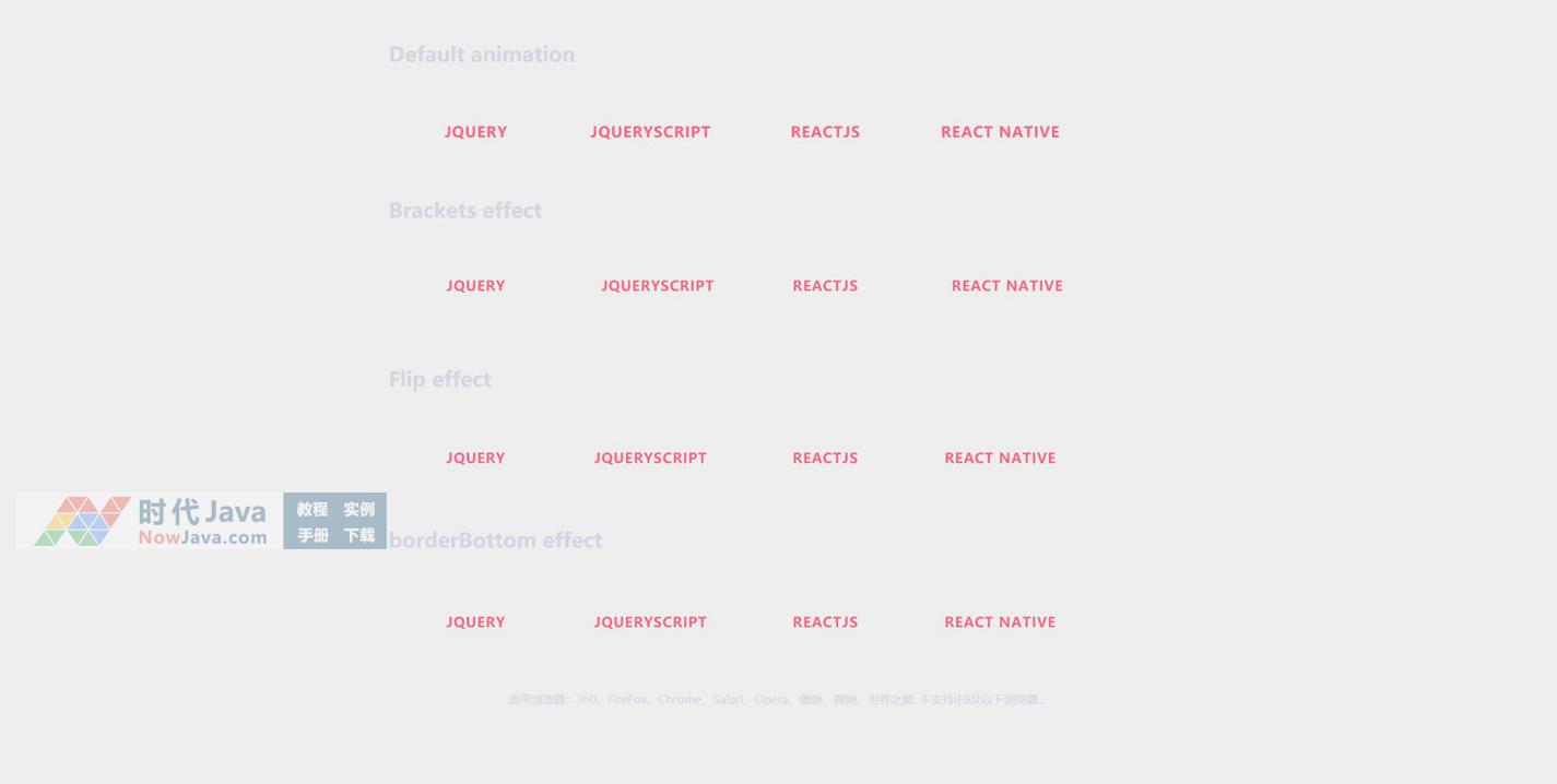 4种jQuery鼠标滑过超链接导航菜单动画代码,3D翻转效果,括号动画效果,上下翻转效果和下划线动画效果。